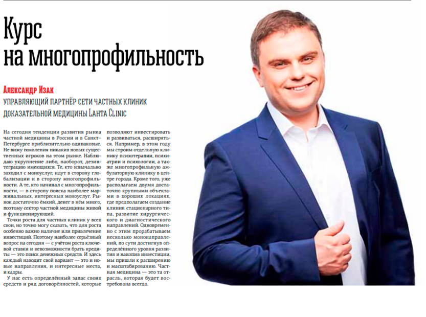Сеть Lahta Clinic заняла 9 место в рейтинге «Наиболее успешные частные медицинские компании по динамике выручки за 2024 год» по версии издания «Деловой Петербург» — ведущего делового издания Северо-Запада.